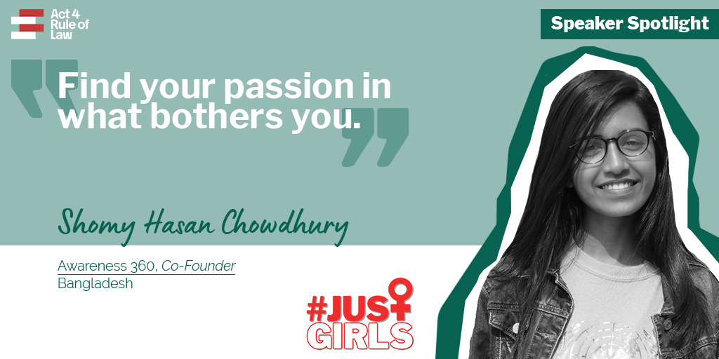 UNODC’s #Act4RuleofLaw is joined by Politics4Her, Education4Her and young leaders of Women Deliver, to amplify the voices of girls, not only for them to stand up for their rights to safety and education, but also to encourage their active engagement in shaping equal justice for all.